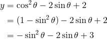 春日 待ってました。しっかりと書いてまして。今回高1高2生にもわかりやすいように少し問題の難易度下げているんですけど。この三角関数の y = cos^2θ - 2sinθ + 2 っていう式の最大値を求めろっていう風な問題にしますね。この問題、現状はこの式です。