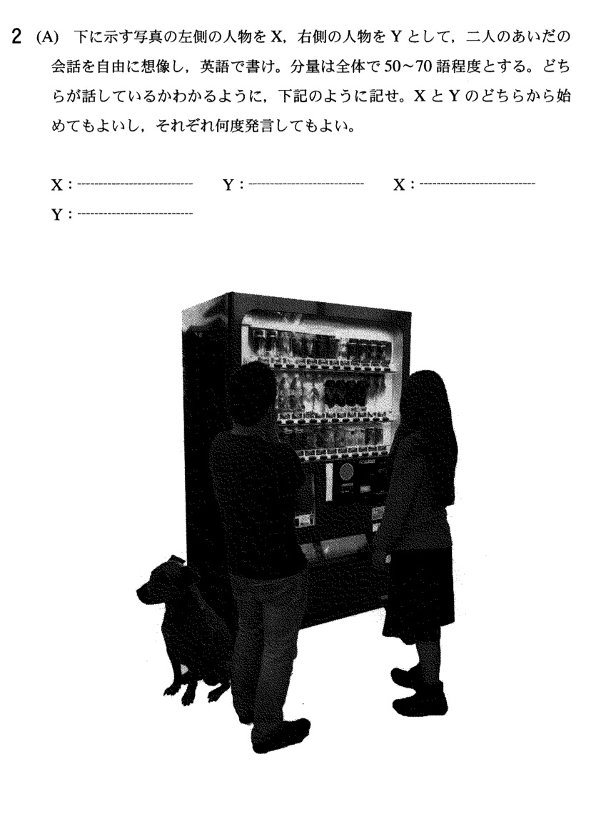 ちなみに大手予備校各社が出している模範解答の中にはこの犬を話題の中心に据えたものもあり、この犬が自動販売機の横でいつも主人の帰りを待っている...と、ハチ公をモチーフにしたものでした。他にも写真の二人が未来人で、過去の遺物である自動販売機について話している...といった答案も。その発想力には脱帽ですが、限られた時間の中の勝負である入試本番では無難に答案を仕上げるのも1つの戦略です。