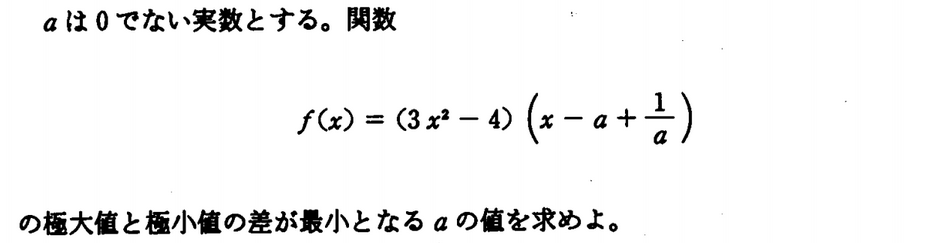 となる。$a$を$-a$にしても極大値と極小値の差は変わらない。よって,以下$a$が正の場合を考える。