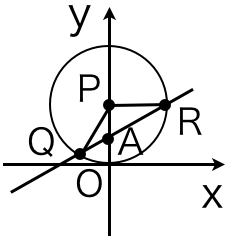 (1)直線$QR$と$y$軸の交点を$A$とする。$A$の$y$座標は$a$なので$PA=1-a$である。あとは$Q$の$x$座標$q_x$と$R$の$x$座標$r_x$の差を求めればよい。