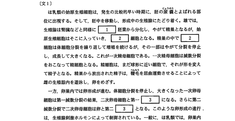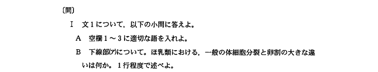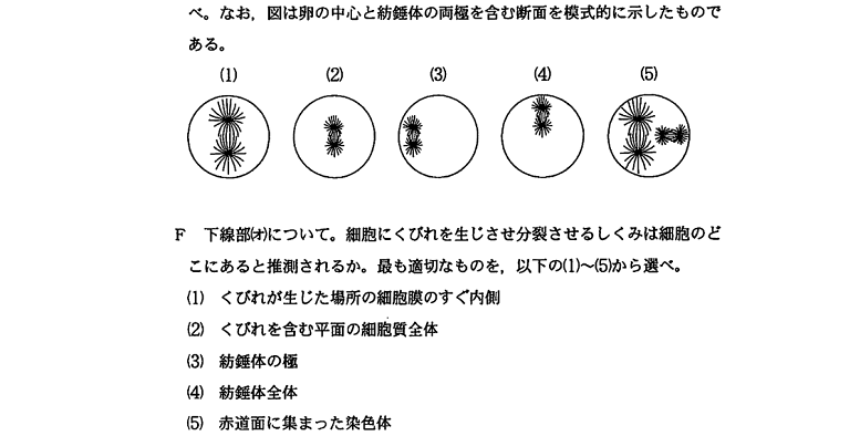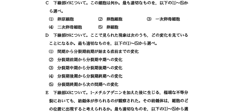 さて、第6回となりました。今回は、卵形成と細胞分裂についての問題を扱います。では、早速問題を見てみましょう。