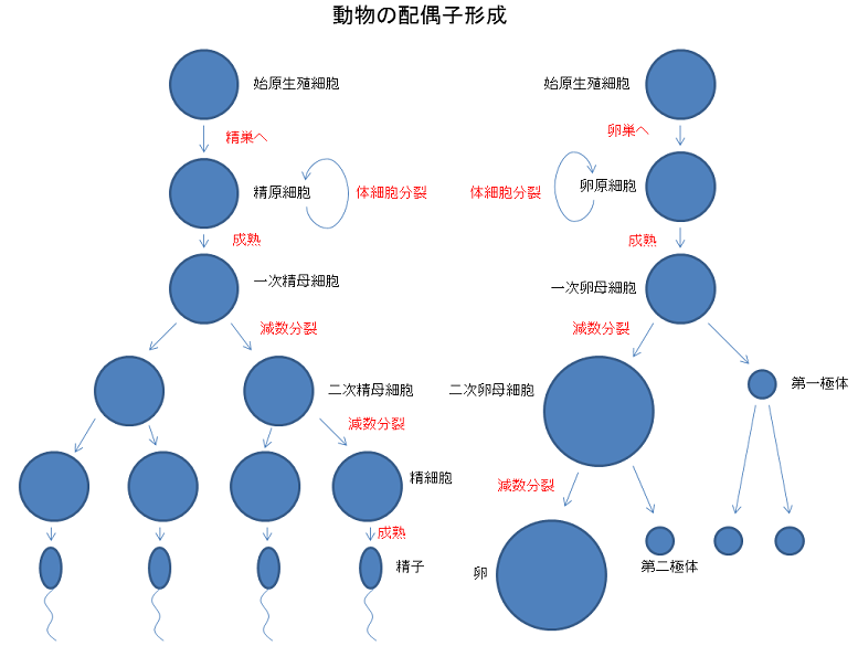 動物の配偶子形成を、簡単にまとめてみました。知識の抜けが無いか、今チェックしてしまってください。