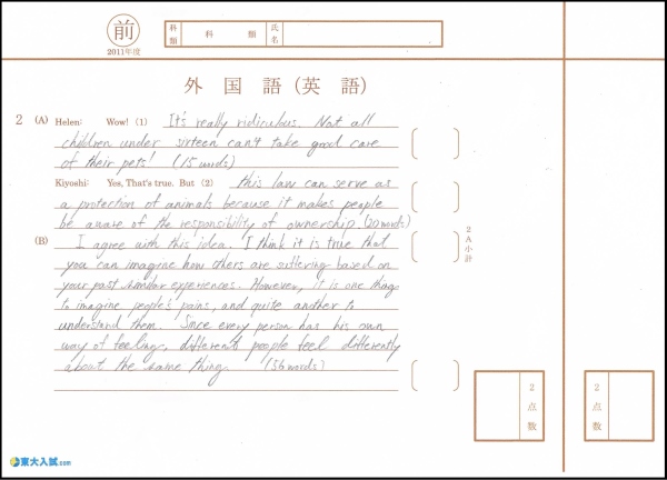 2015年度の前期日程一般試験から、記号問題はマークシートに回答する形式になりました。センター試験とほぼ同じなので、センターを乗り切った東大受験生であれば戸惑うことはないでしょう。