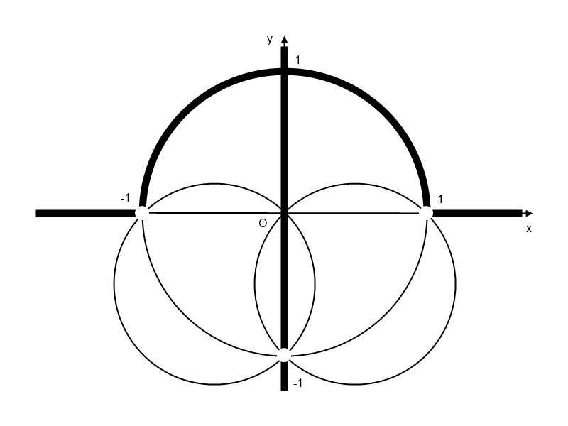 かつ「 $x=0$ または $y=0$ または $x^2+y^2=1$ 」……②