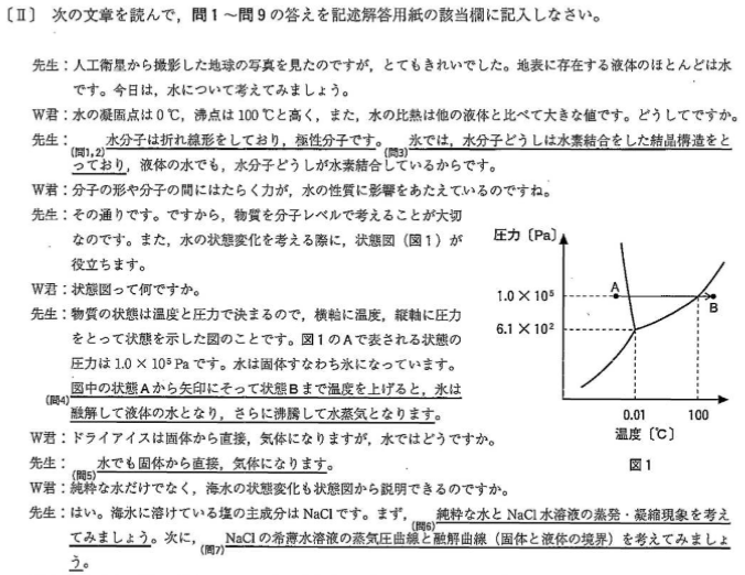 分量は、東大よりは少ないですが、やはり時間内の完答には厳しい分量です。第1問については後述しますが、特に問題の取捨選択を正しく行うことが重要で、あまり時間をかけすぎないように注意する必要があるでしょう。当たり前ですが、満点を取ることよりも合格点を取ることがまずは重要です。時間配分のミスはないように気を付けてください。
