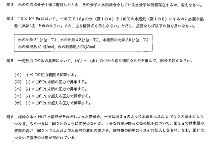 知識については、東大入試よりも高水準のものが問われます。受験生の手がなかなか回りにくい高分子化合物の分野からは、チロシンやシステインなどのアミノ酸や、ガラクトースなどの糖類の構造を知識として問う問題が出題されたことがあります。また、アセタール化についてリード文に説明なく出題したこともありました。極端な例では、大学範囲の電子軌道の知識(s軌道、p軌道、d軌道…)を要求されたこともあります。