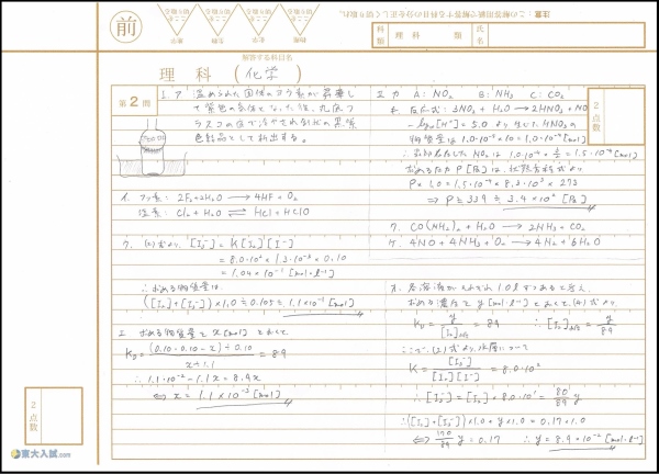 東大化学の解答用紙は、ここ20年以上次の形式となっています。