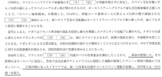 論述については東大の第2問で求められる知識と同じレベルを必要とする印象です。ただし、必要とされる知識の方向性は、東大で求められるような世界史全体を縦にも横にも広く俯瞰したものではなく、ある特定の時代・地域の縦の流れを高い精度で把握するというものです。